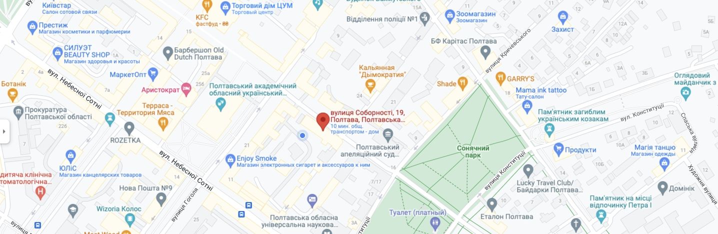 Адреса: 36000, м. Полтава, вул. Соборності 19в